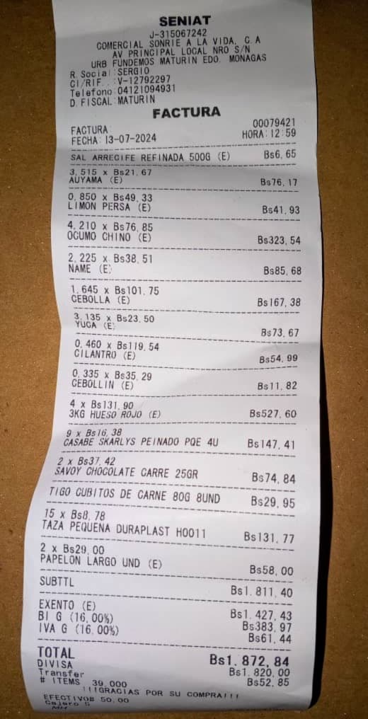 Pago de aliños, verduras, huesos y demás ingredientes: 75$