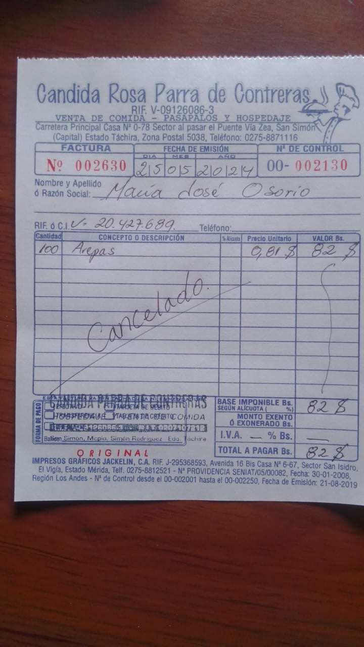 No contamos con factura de la gasolina ya que surtió en carretera antes de regresar a San Cristóbal, tomando en cuenta que ese fin de semana el litro de gasolina estaba a 5000COP colombianos