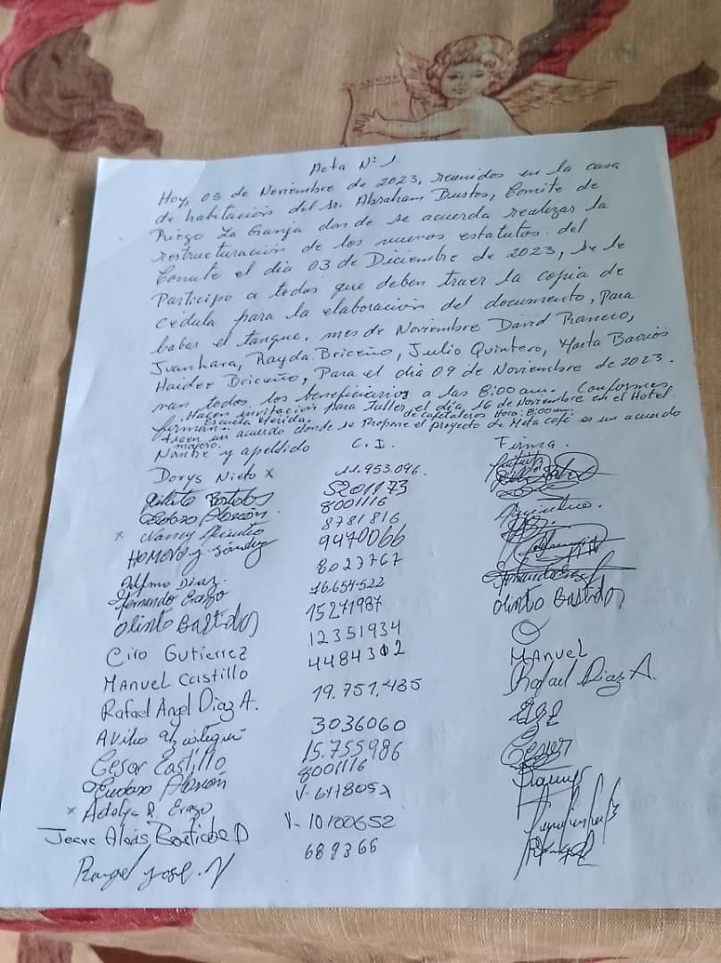 El día 5/11/2023 se acuerda y APRUEBA en reunión con los productores de Cacute, Asociación de Riego y la empresa Varietales Sur del Lago, crear la Asociación de productores de café de especialidad en CACUTE, basados en el desarrollo del proyecto MetaCafé85+