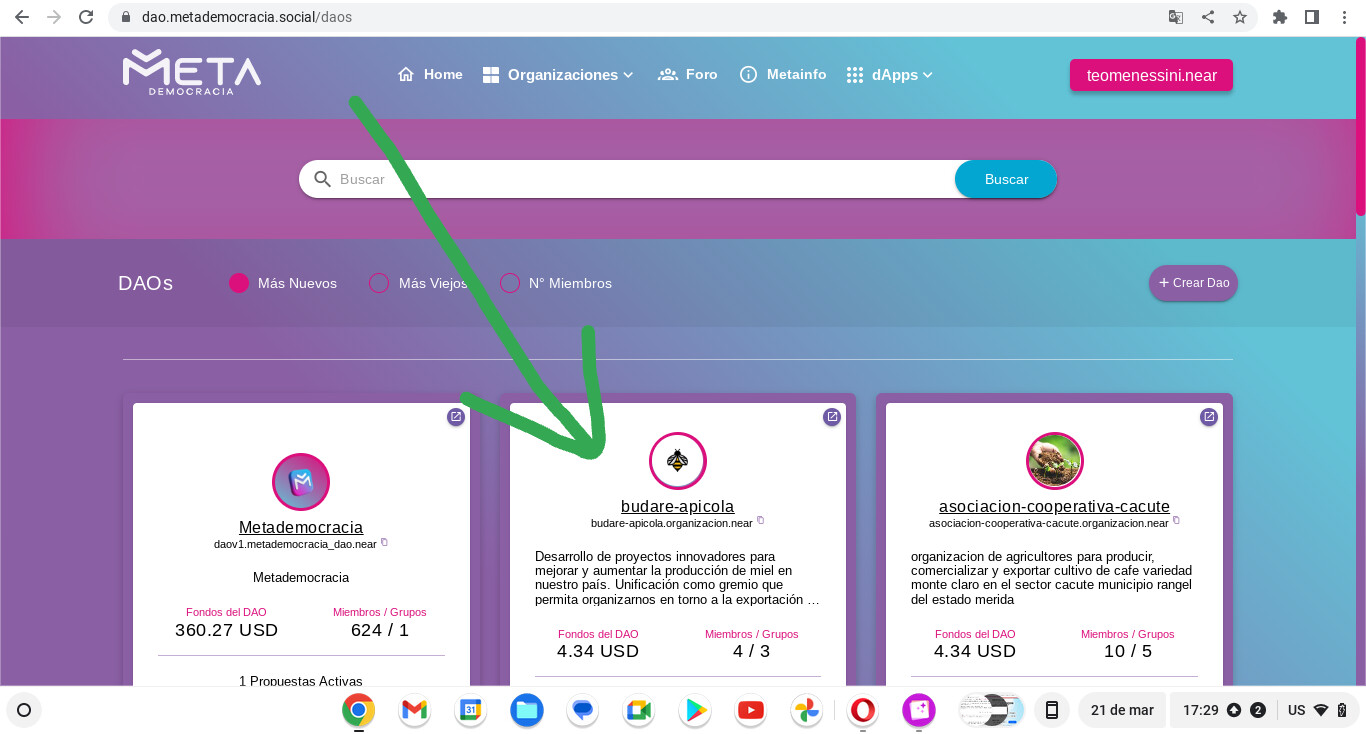 Vamos a ingresar en el sistema de organizaciones descentralizadas METADEMOCRACIA para crear una propuesta de agregarnos como miembros del Budare APICOLA