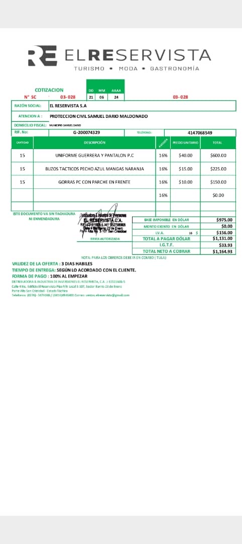 Desde el Budare AREPA Tachira, se quiere realizar un donativo $350 para apoyar a los funcionarios de protección civil municipio Samuel Darío Maldonado (La Tendida).