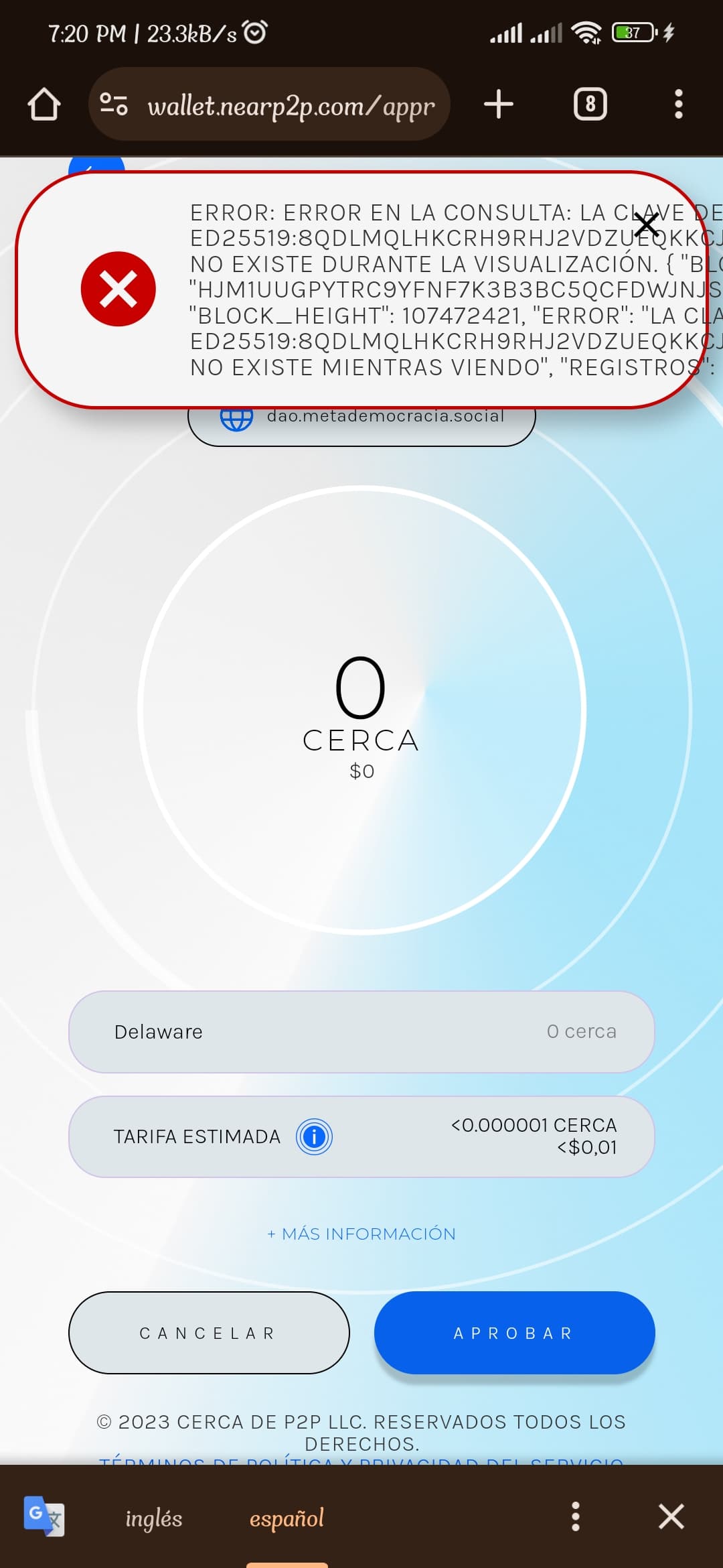 al momento de votar o aprobar propuestas solo me aparece esto, despues de cumplir debidamente los pasos y conectar la wallet