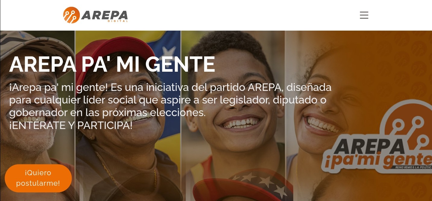 El proyecto “AREPA pa’ mi gente” se enfoca en posicionar al partido AREPA DIGITAL como una opción política innovadora y vanguardista, que utiliza la tecnología para empoderar a la ciudadanía y ofrecer soluciones a sus necesidades. Se busca construir una base sólida, que posicione el liderazgo de la gente a través de su participación, en conjunto a las herramientas digitales innovadoras a nuestra disposición, formando a las nuevas generaciones de políticos.