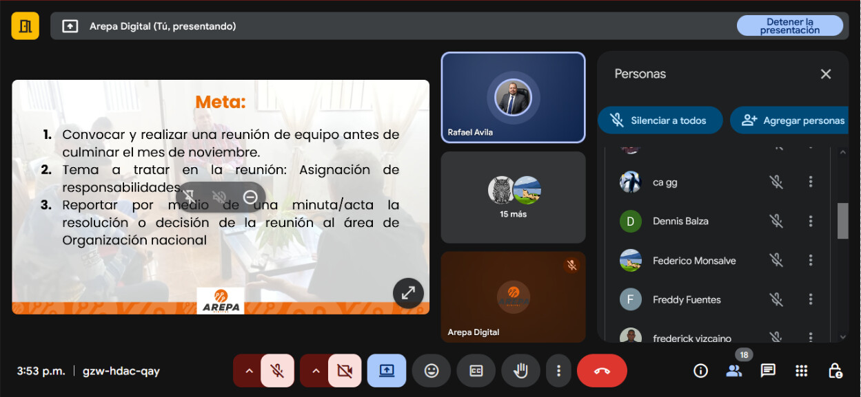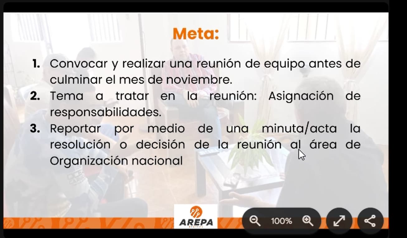- Tarea asignada: Reunión de equipo para asignar responsables por área.