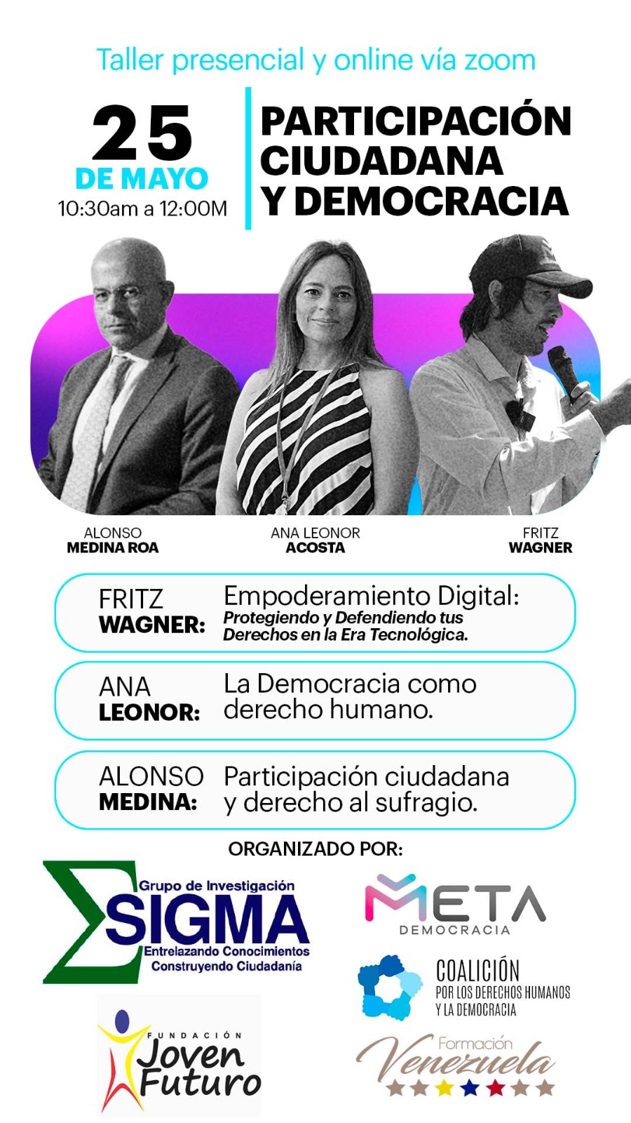 Abre su ponencia estableciendo dos premisas, la democracia es la forma para el desarrollo óptimo del ser humano como individuo; la calidad de la democracia en países latinoamericanos ha descendido gradualmente hasta el 2023 desde hace 8 años según el índice de democracia anual que publica The Economist. Vislumbrando entonces una tendencia gradual a adoptar medidas autoritarias y una distorsión de La Libertad.